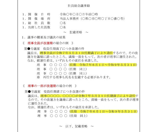 ② 議事録には、新たに選任される役員の任期がいつからいつまでなのかを明記しておく。